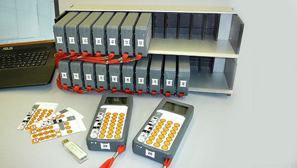 Unser Gerät kann über die Dockingstation DS12 zentral programmiert, geladen und ausgelesen werden. Alternativ ist auch die mobile Nutzung per USB-Stick und Laptop – z. B. im Auto – möglich. Die gesammelten Daten werden anschließend über die Software KNO-WIN oder FLU-WIN ausgewertet.